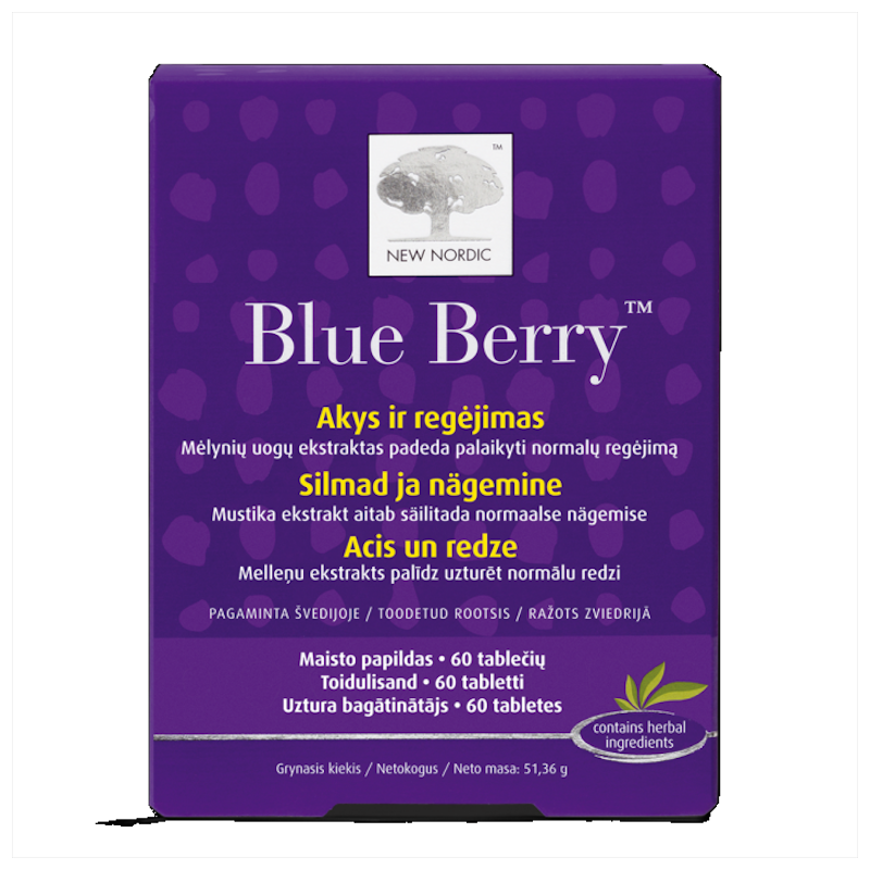Rootsis toodetud Blue Berry Omega-3 kapslid sisaldavad oomega-3 rasvhappeid, A-vitamiini, tsinki, mustika, hariliku silmarohu ja peiulille ekstrakte. Vitamiin A ja tsink aitavad säilitada normaalset nägemist. Blue Berry Omega-3 päevane annus sisaldab 50 mg ofEPA (eikosapentaeenhapet) ja 250 mg DHA (dokosaheksaeenhapet). DHA aitab säilitada normaalse nägemise.Kasulik toime avaldub siis, kui päevas tarbitakse 250 mg DHA-d.